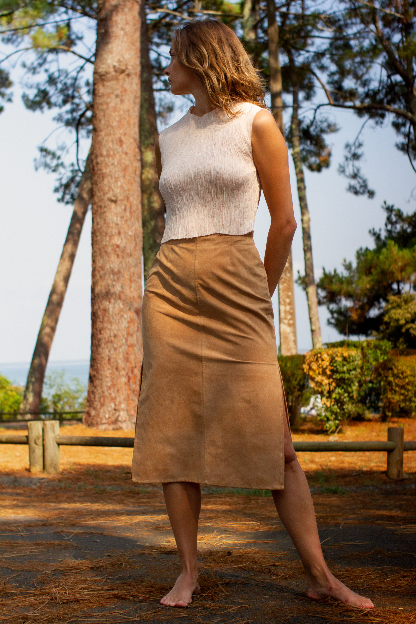 Jupe longue à fentes beige