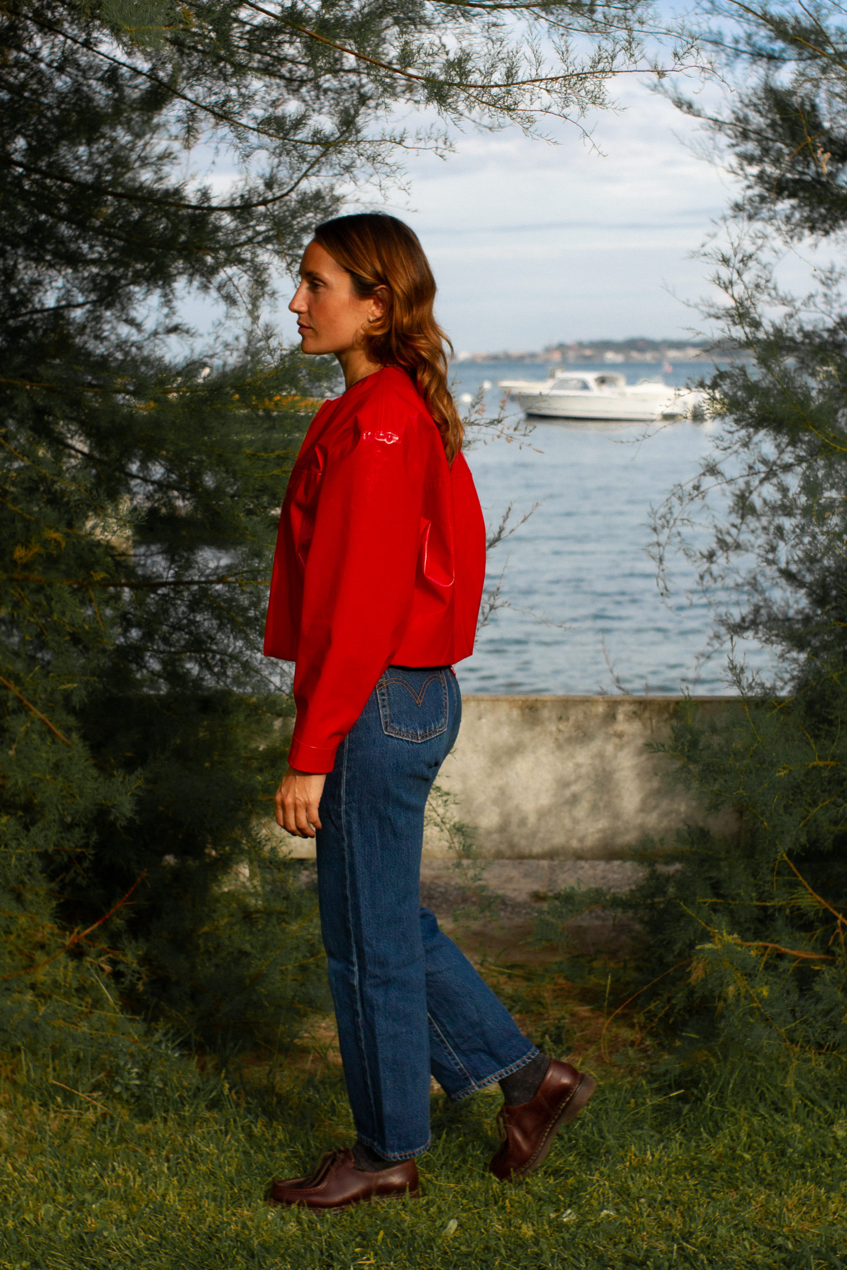 - Vêtement non doublé, finitions coutures couchées surpiquées et en biais.